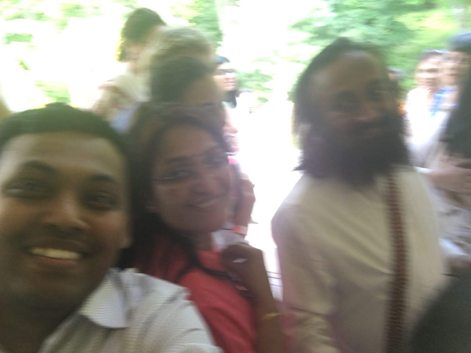 Well here is the story and significance behind it. I had met SSRS for the first time. There were around 50-100 people walking with him towards hall where there will be mediation session. It was jam packed small space where I was trying get ahead of everybody by any means to take selfie with him. It seems impossible, there were more ladies than gents, and I can’t push people as per my wish. I left hope at one point. I thought let me take selfie from back where I am going to be in the picture at least with back. Aashi also was a concern in the crowd she was feeling suffocating but I had to click a pic. By the way SSRS walks fast, one get to walk fast to be able to walk with him. With Aashi it seems impossible to walk fast and be able to get selfie with him. So I had resorted to the option of taking selfie with him leaving. Well something is better than nothing. I was disappointed but said all is well, no option, let me click whatever.